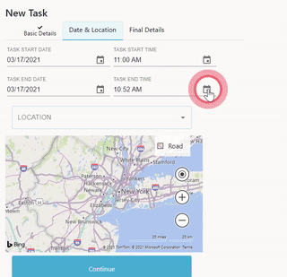 Tasks can only be scheduled within the validity of the project duration, as defined while creating the project. All locations associated with the selected project are available as choices to perform the task.