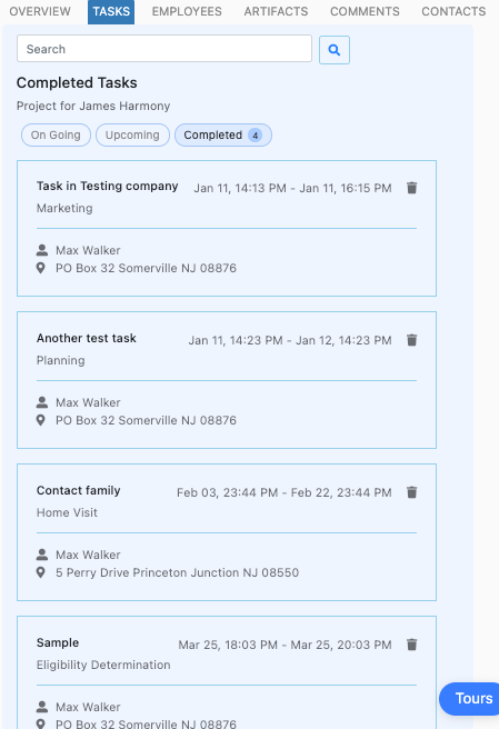 Case managers also have access to the tasks that have been completed to see the associated details.