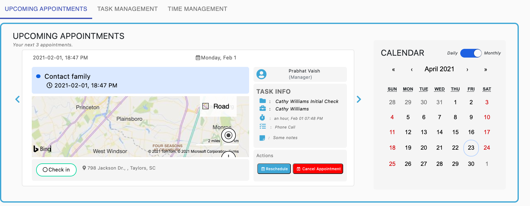 Here, you'll be able to see all of your appointments and tasks for today, with the option to view all should you wish.