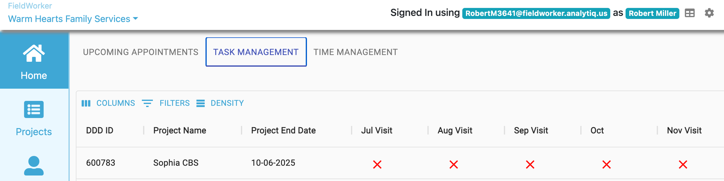 Case managers also have access to the default Fieldworker customer and project page functionality.